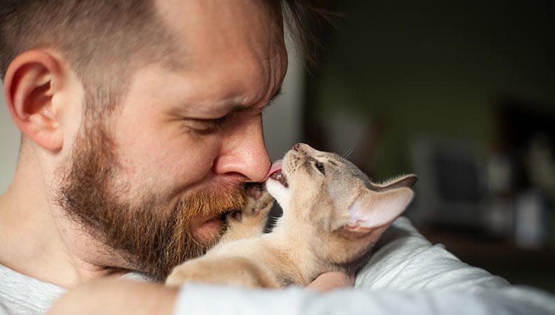 Much like mother cats lick their kittens to groom and comfort them, your cat may be trying to care for you in the same way. Cat licking can be positive; it's a way to show affection, and this behaviour helps build trust and show that they feel good, safe, and secure around you.