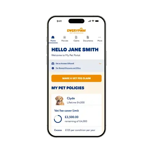One pet or multiple pets, the Pet Portal makes managing your pet policies a doddle. Take out a policy, register on the portal and get to grips with managing almost every aspect of your policy online. Need to check your vet fee limits, make a vet fee claim, view your documents, get in touch? It's all there, ready for when you need it.